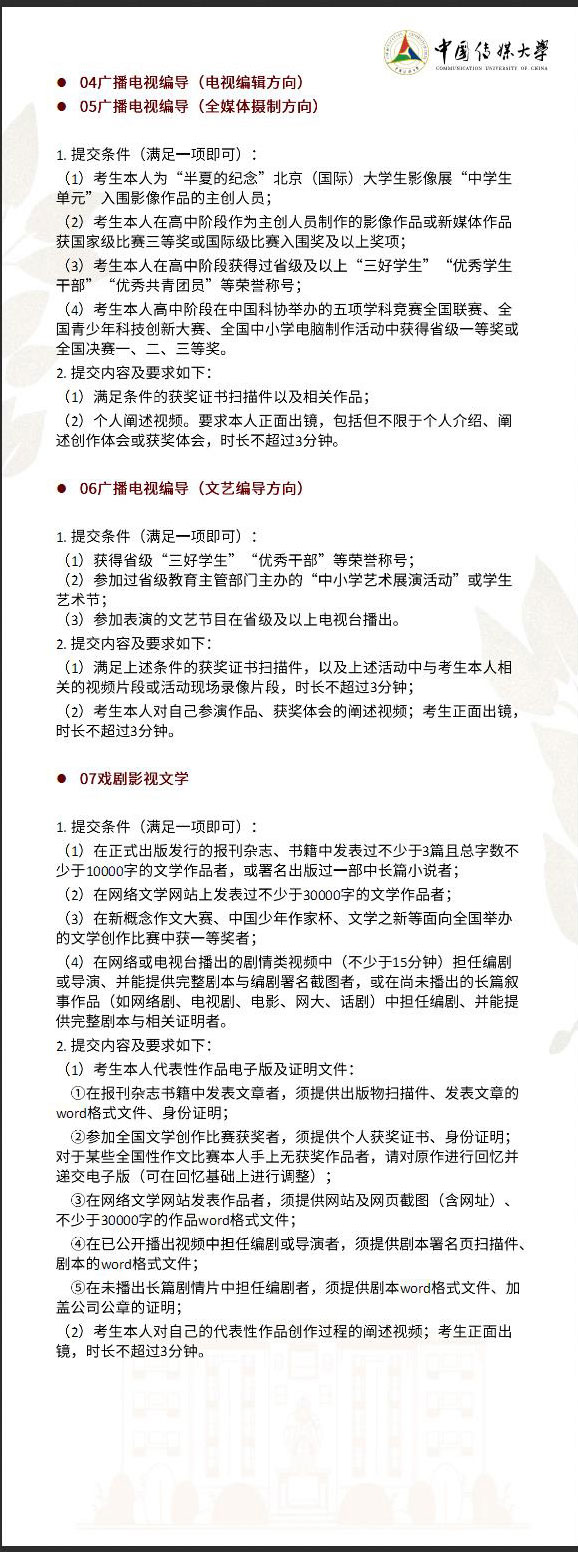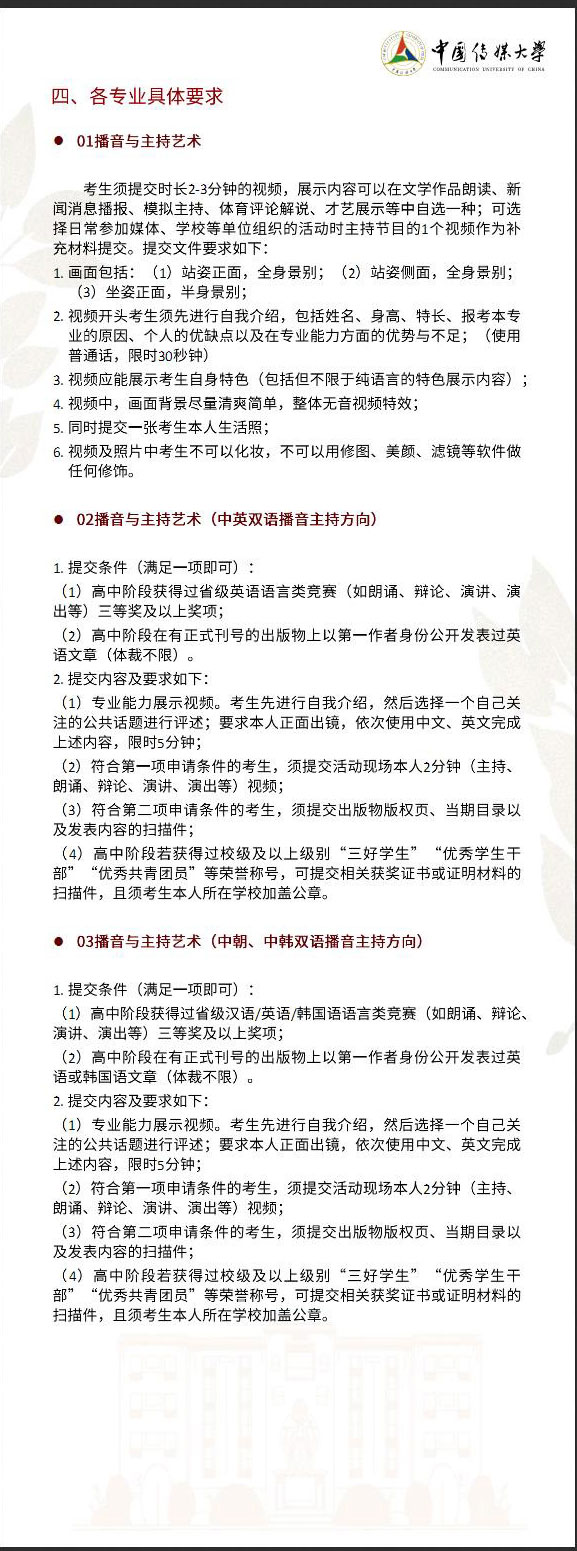 您現在的位置:首頁 > 播音主持名校 > 中國傳媒大學 > 中國傳媒大學招生簡章
