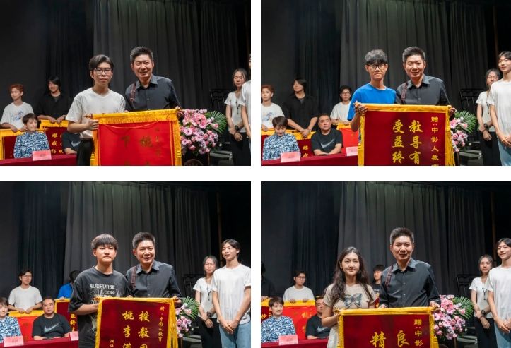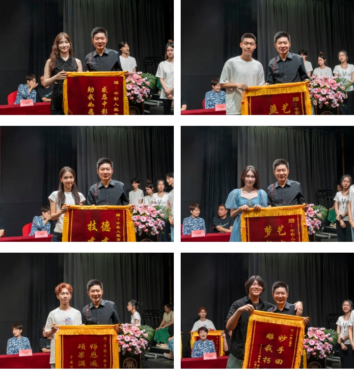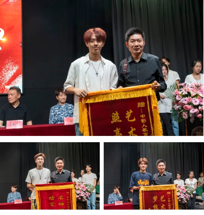 在開學典禮的現場,優秀畢業生代表紛紛獻上錦旗來表達對中影人教育、老師們的深深感謝。一面面錦旗,代表著我們的學子對中影人的的感謝和祝福,也承載著他們在中影人教育無數個難忘的日子。